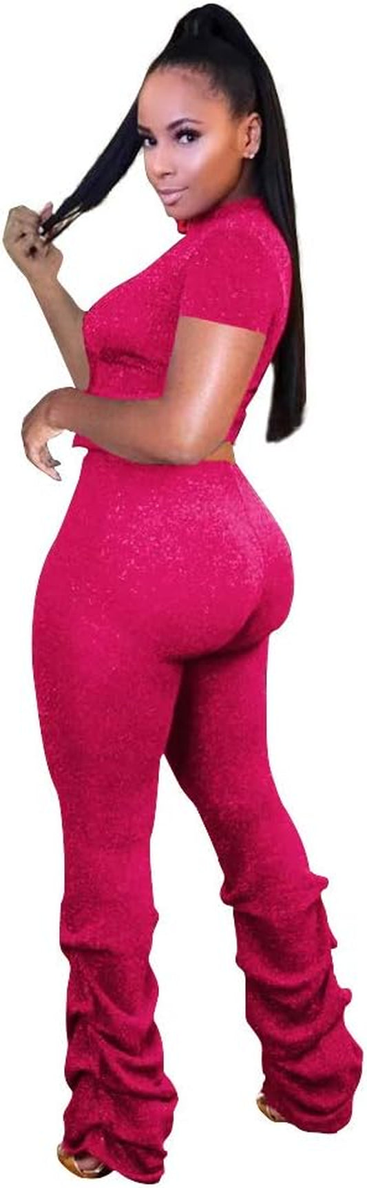 Sexy Club Outfits for Women Sequin Pants and Tops 2 Piece Bodycon Jumpsuits Sets Rose